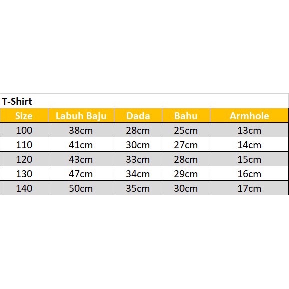 Saiz Baju Budak 120 / Fascinating Fashion Size Chart Jadual Saiz